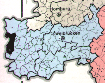 Der obige Kartenausschnitt zeigt die Grenzen des Landkommissariates Zweibrücken im bayerischen Rheinkreis um 1850 im Maßstab 1:600.000. Die Karte wurde von Herbert Endlich bearbeitet und ist als Blatt 79 des Pfalzatlas erschienen.