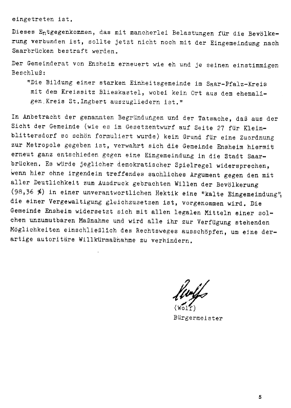 4. Beschluß des Gemeinderates Ensheim vom 16.11.1973, Seite 5