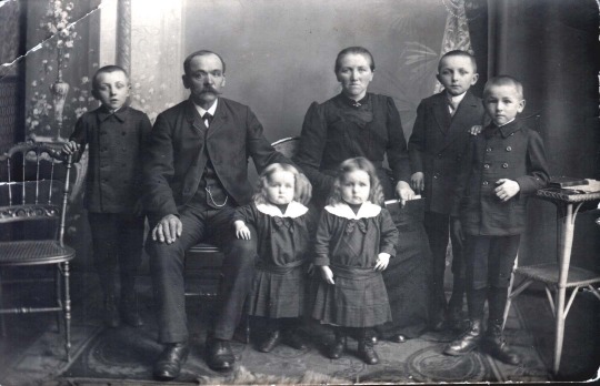 Von links nach rechts: Sepp, Vater Nikolaus Reinstadler, Rosa, Maria, dahinter die Mutter Dina, daneben die Söhne Nickel und Fritz.