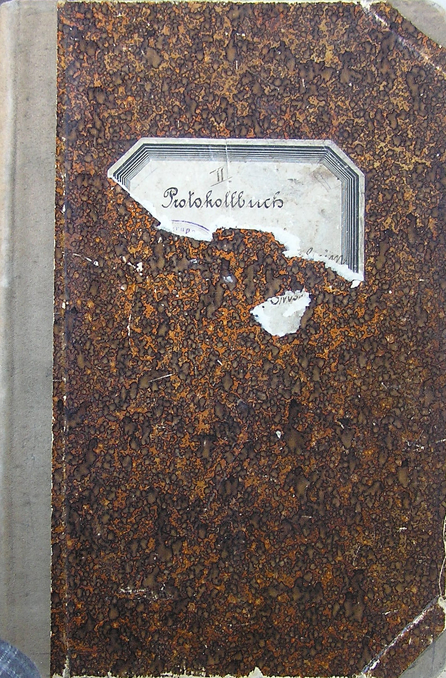 "2. Protokollbuch" der Reichsvereinigung ehem. Kriegsgefangener (R.e.K.), Ortsgruppe Ensheim / Außenansicht