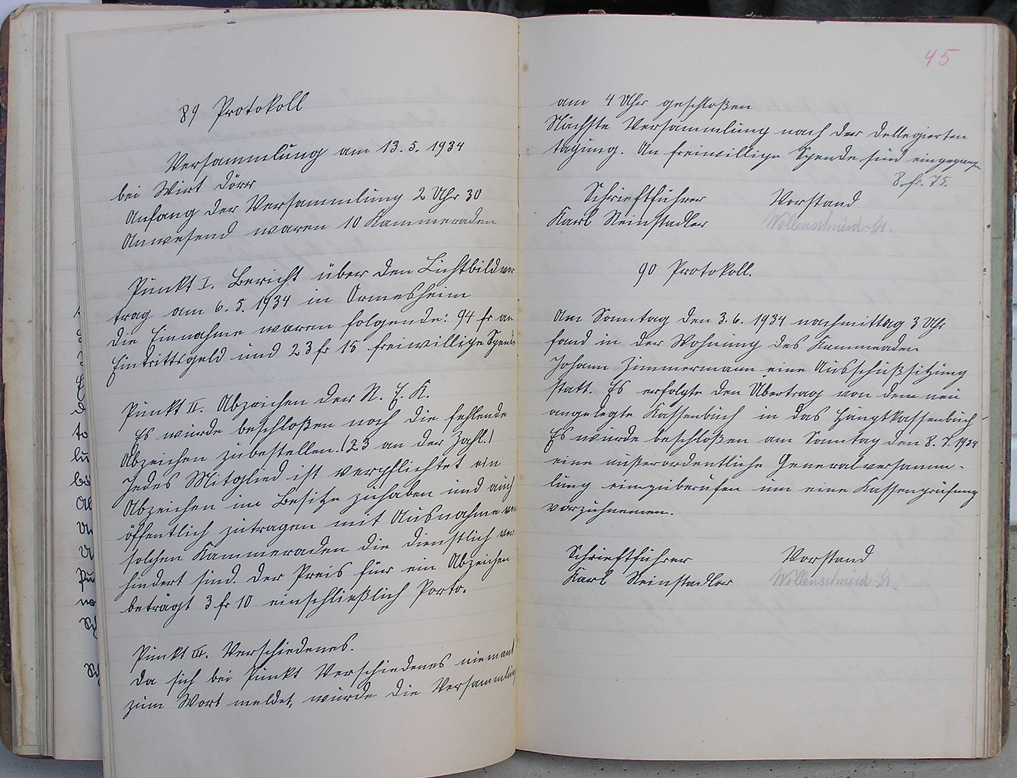 "2. Protokollbuch" der Reichsvereinigung ehem. Kriegsgefangener (R.e.K.), Ortsgruppe Ensheim / Innenansicht (Beispielseite)